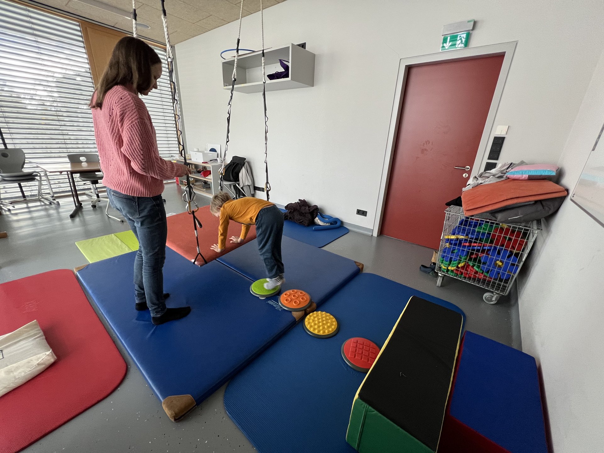 Ich durfte Beatrix bei Ihrer Arbeit beobachten und muss sagen, dass sie sehr liebevoll und äußerst einfühlsam unsere Schüler:innen anleitet, damit diese ihre grob- und feinmotorischen Fähigkeiten verbessern, die nicht nur für die Durchführung von schulischen Aufgaben, wie Schreiben oder Basteln notwendig sind sondern auch für ganz alltägliche Dinge wie das Anziehen von Socken oder Kleidungsstücken.