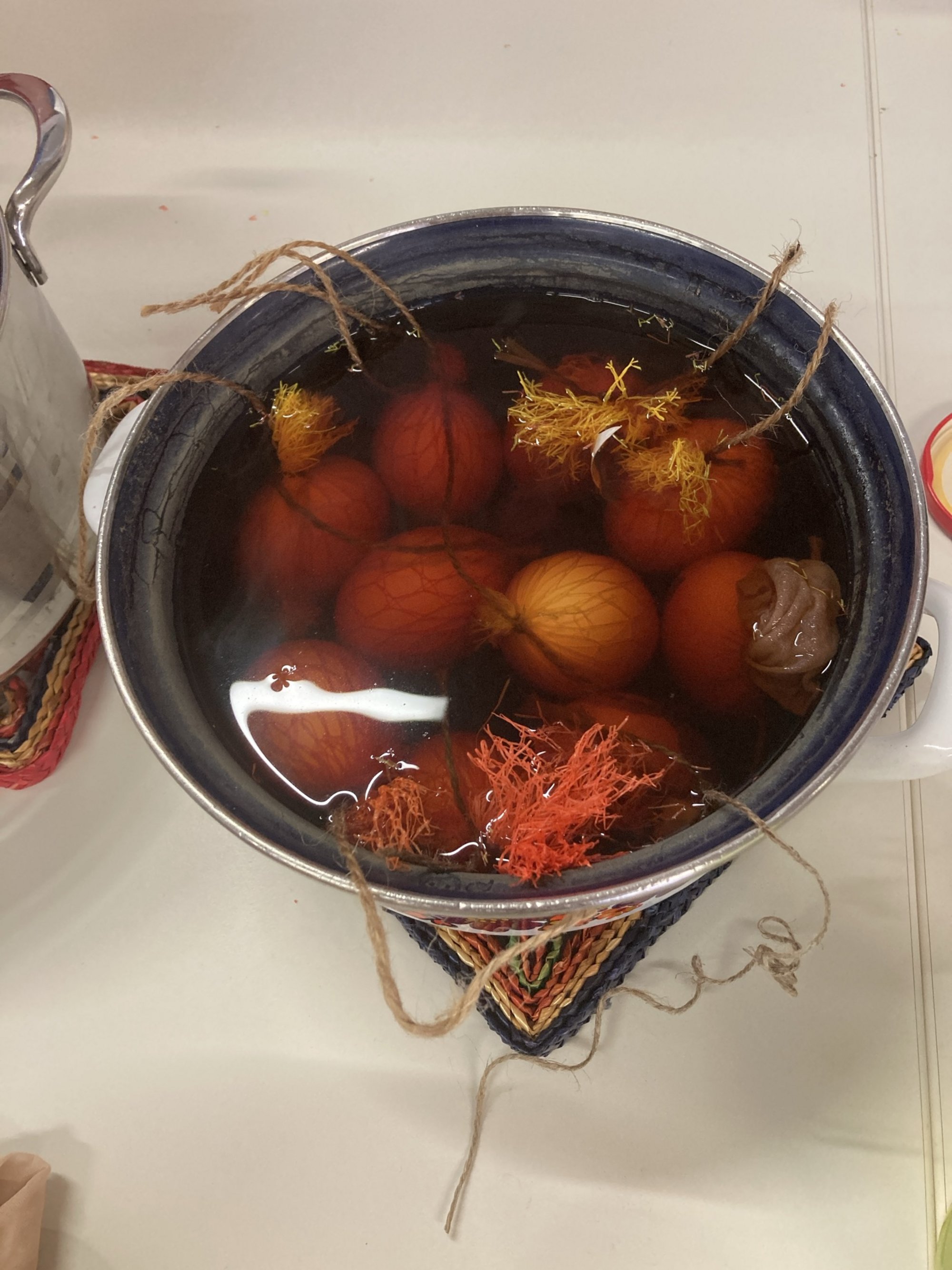 Die Klasse KIZ 2 hat rund um Ostern kreativ gearbeitet und Eier mit natürlichen Materialien wie Kurkuma, Zwiebelschalen und roten Rüben gefärbt. Dabei entstanden wunderschöne, bunte Kunstwerke. Zum Abschluss wurde gemeinsam ein leckerer Osterhasen-Kuchen gebacken.