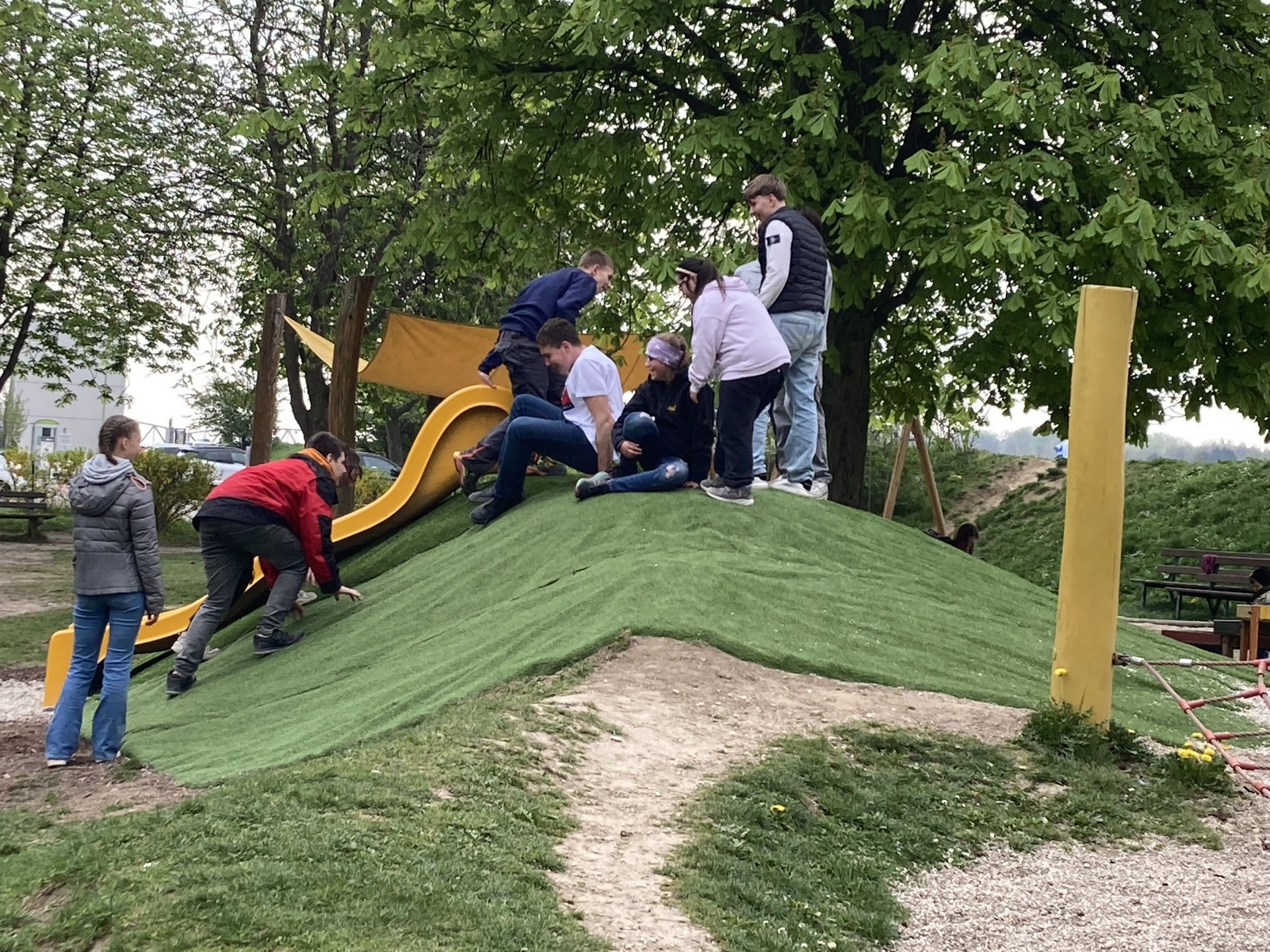 Aus anfänglicher Zurückhaltung entwickelte sich am Steiner Spielplatz rasch ein fröhliches, ungezwungenes Miteinander. Es wurde gelacht, gespielt und die gemeinsame Zeit sichtlich genossen – ganz ohne Berührungsängste, dafür mit echter Freude.