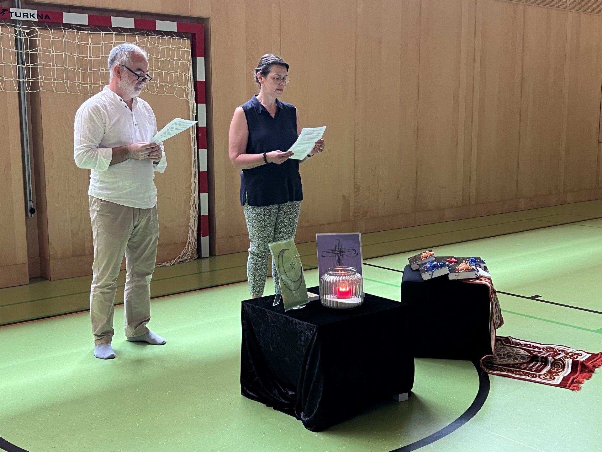 Es wurde aus den heiligen Büchern vorgelesen, Geschichten erzählt und unsere Schulabgänger:innen gebührend verabschiedet. Zu diesem Anlass gab es je nach Zugehörigkeit entweder eine Bibel oder einen Gebetsteppich geschenkt.