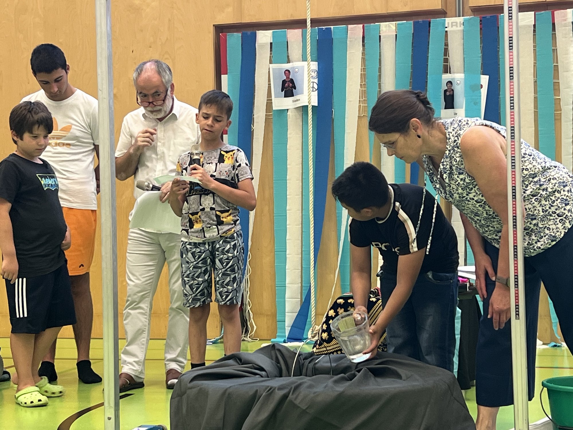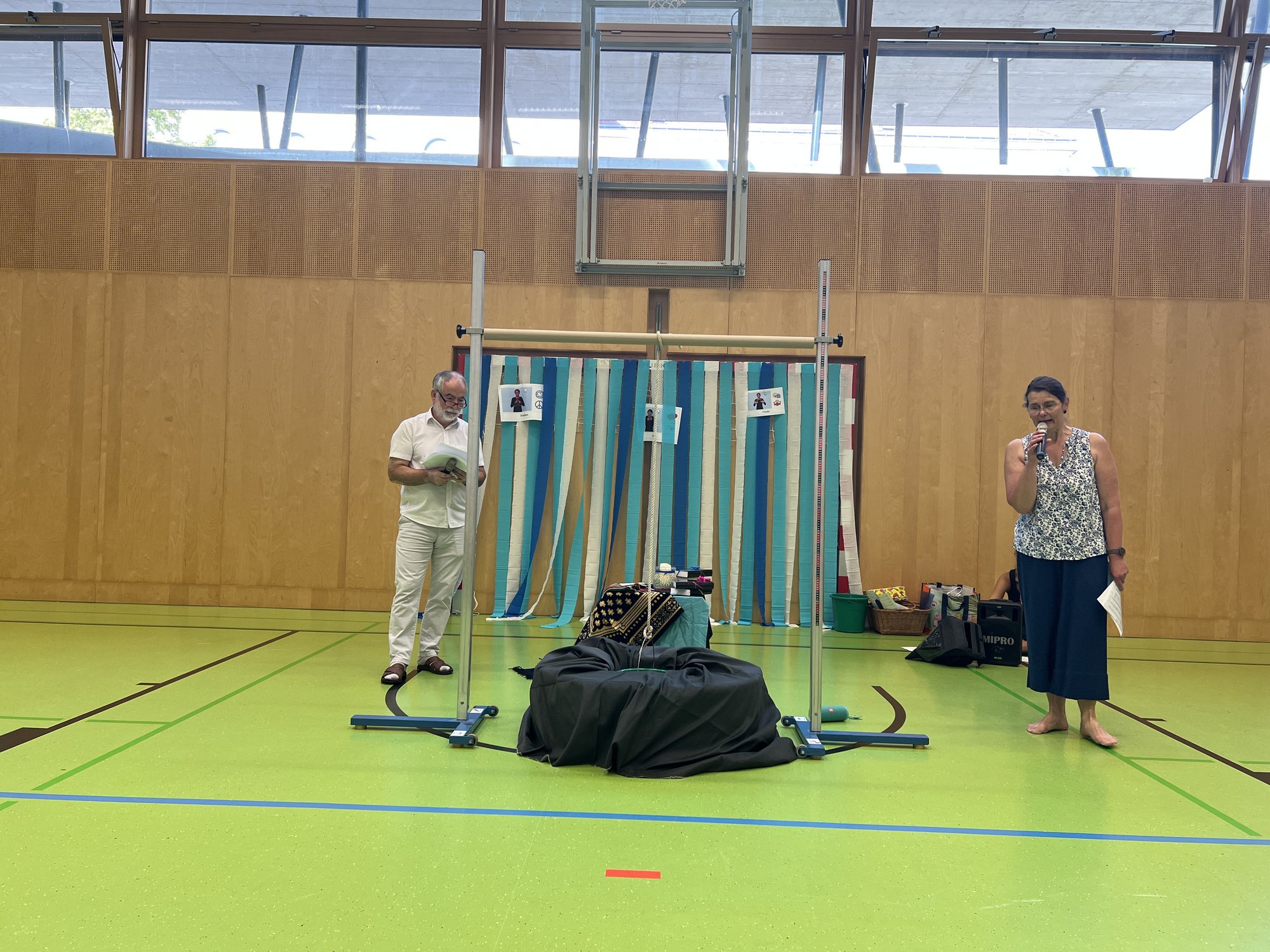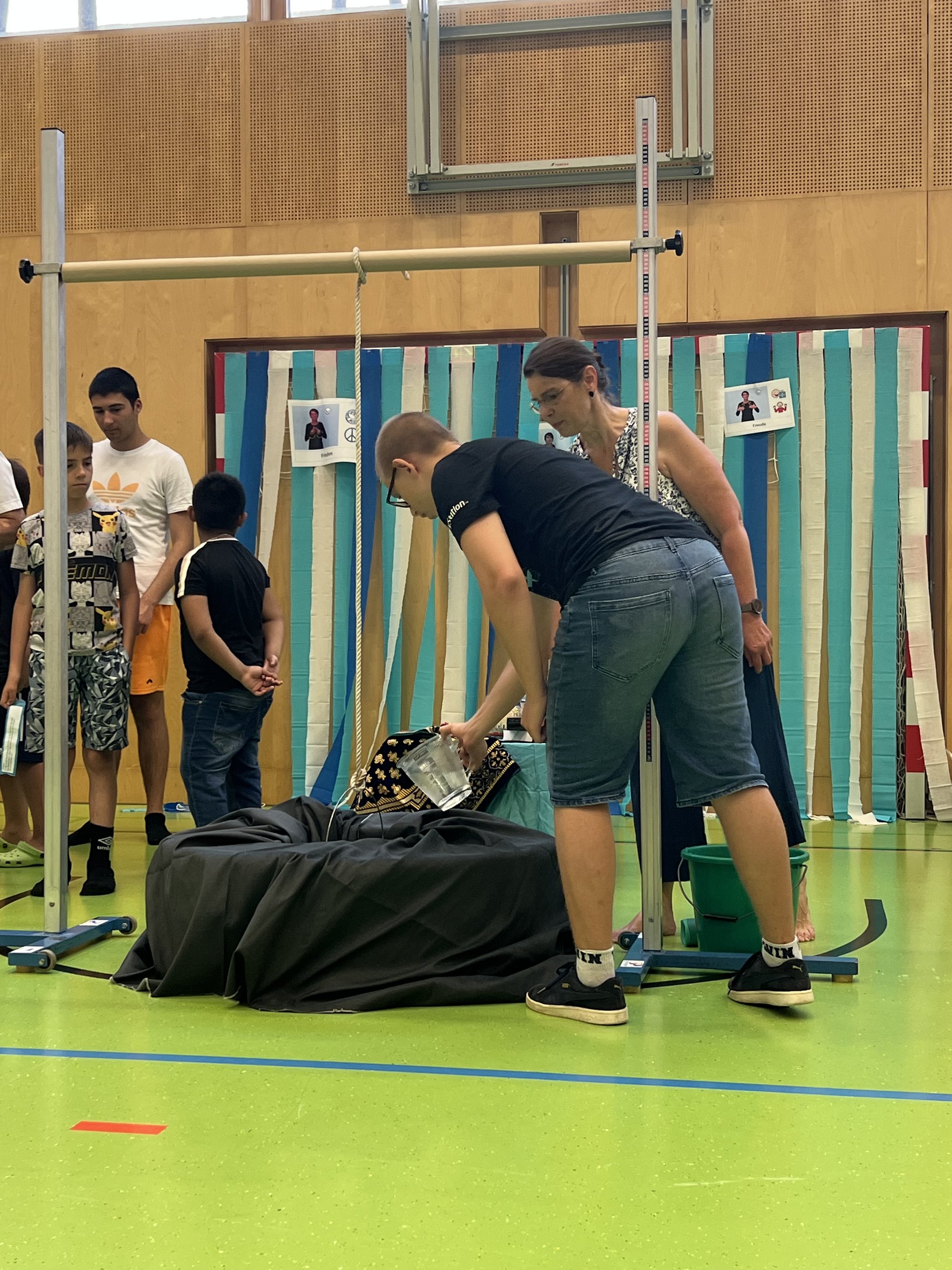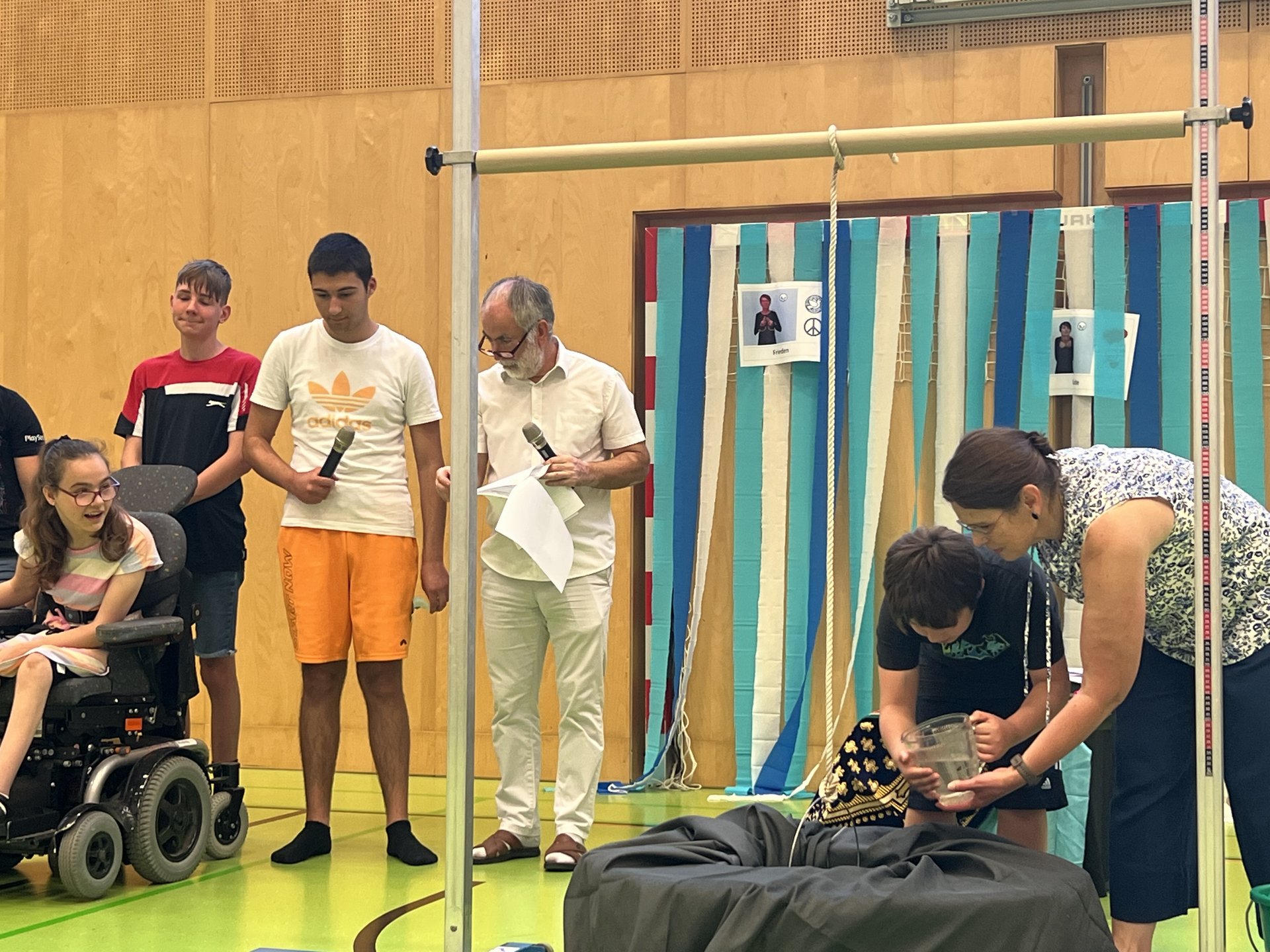 Symbolisch wurde ein Brunnen im Turnsaal aufgebaut, aus welchem die Schüler:innen Wasser schöpften und dabei ihre vorbereiteten Reden präsentierten.
