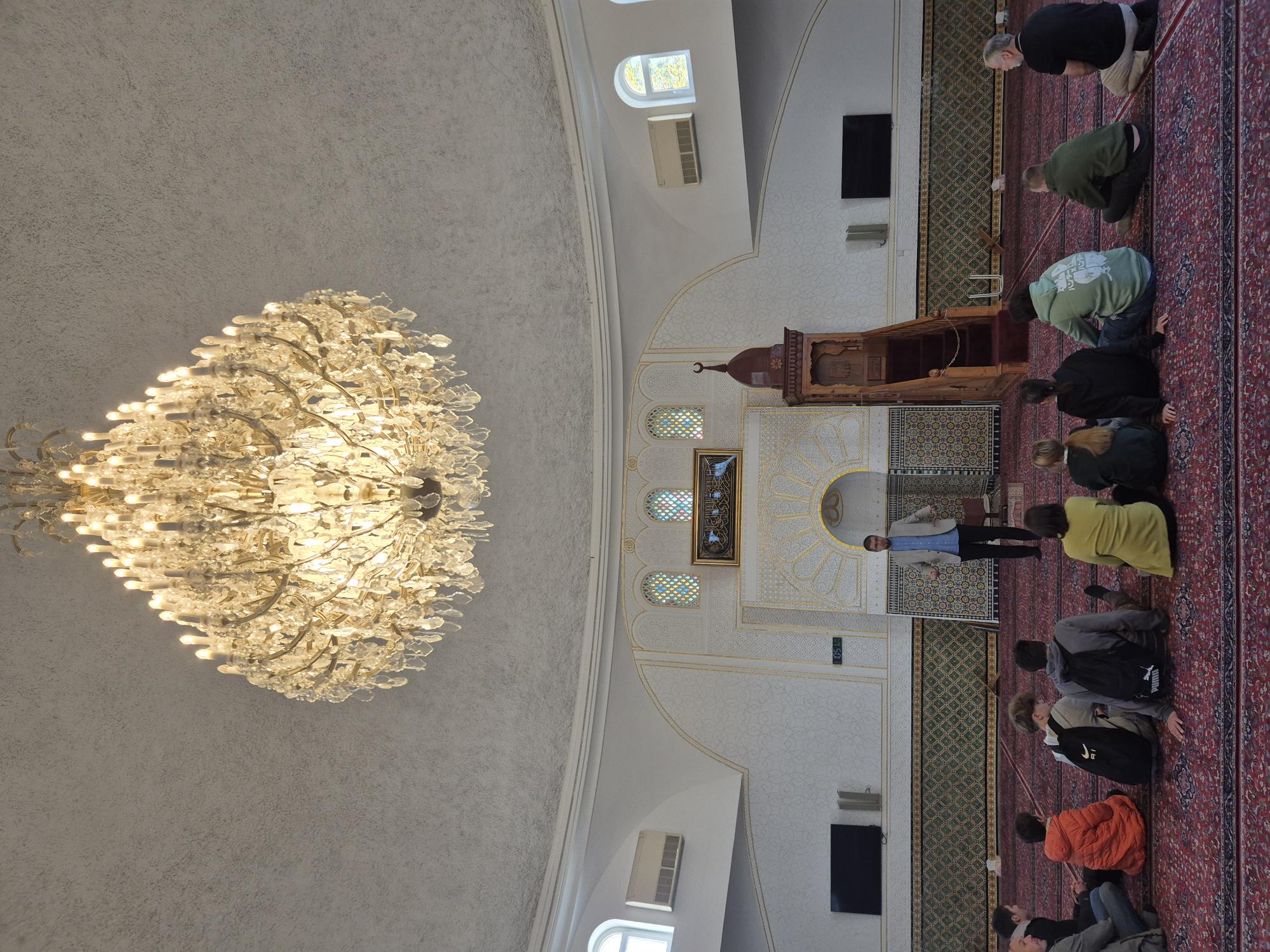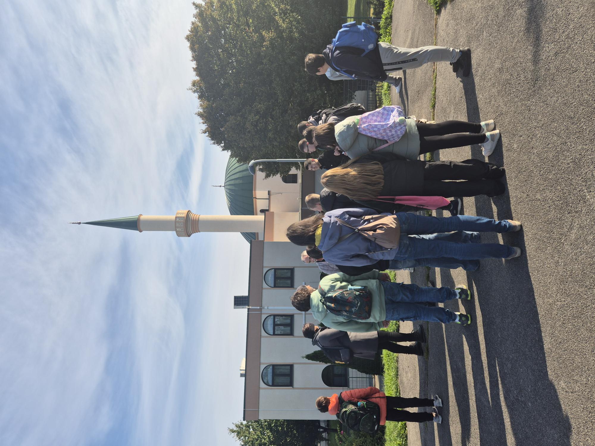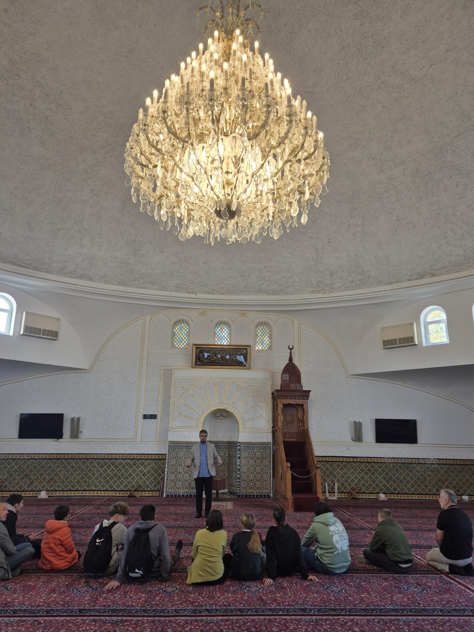 Ein Imam führte uns durch die Moschee. Eine Moschee erkennt man an der Kuppel und dem Minarett. Auf dem Dach befindet sich ein Halbmond.