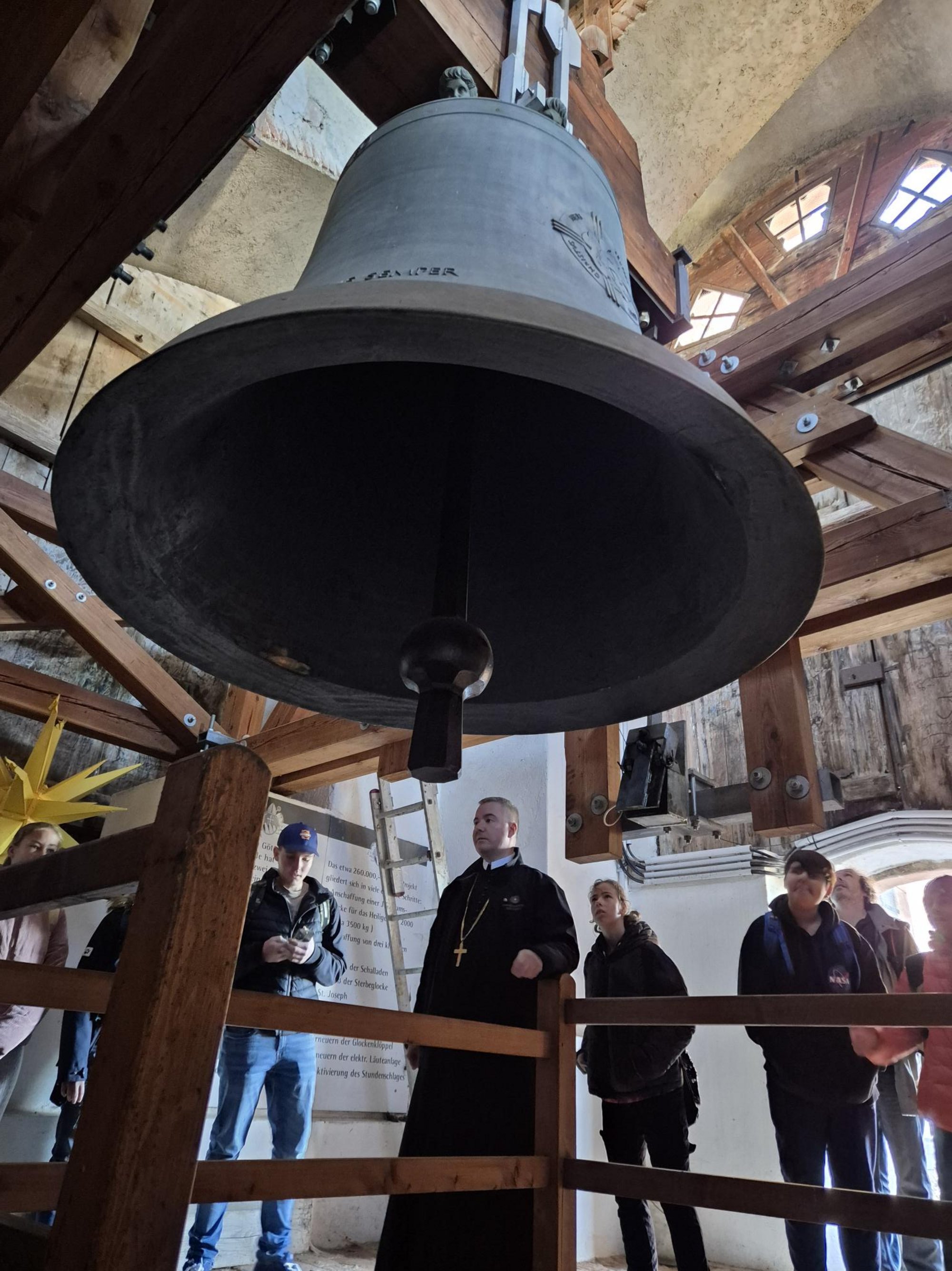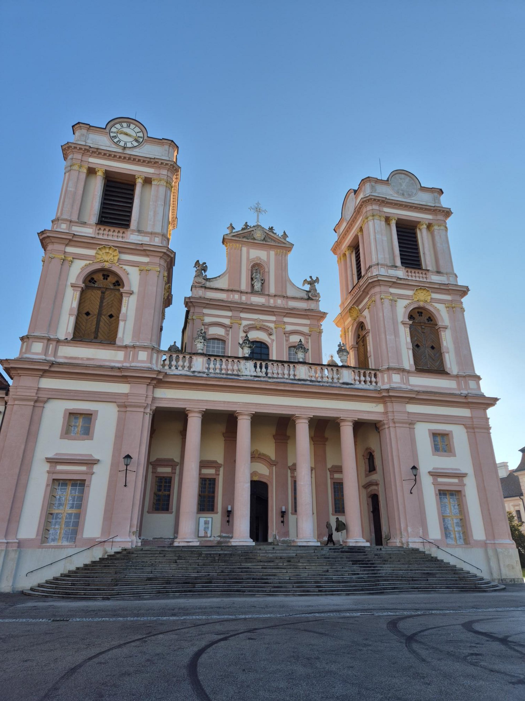 Der Abt führte uns durch das Stift Göttweig. Er zeigte uns die Kirche, den Glockenturm und die Krypta. Auf dem Dach einer Kirche befindet sich ein Kreuz. In der Krypta war das Grab des Gründers vom Stift Göttweig. Er hieß Bischof Altmann. Seine Knochen werden heute als Reliquien in einem Glasschrank in der Krypta aufbewahrt.