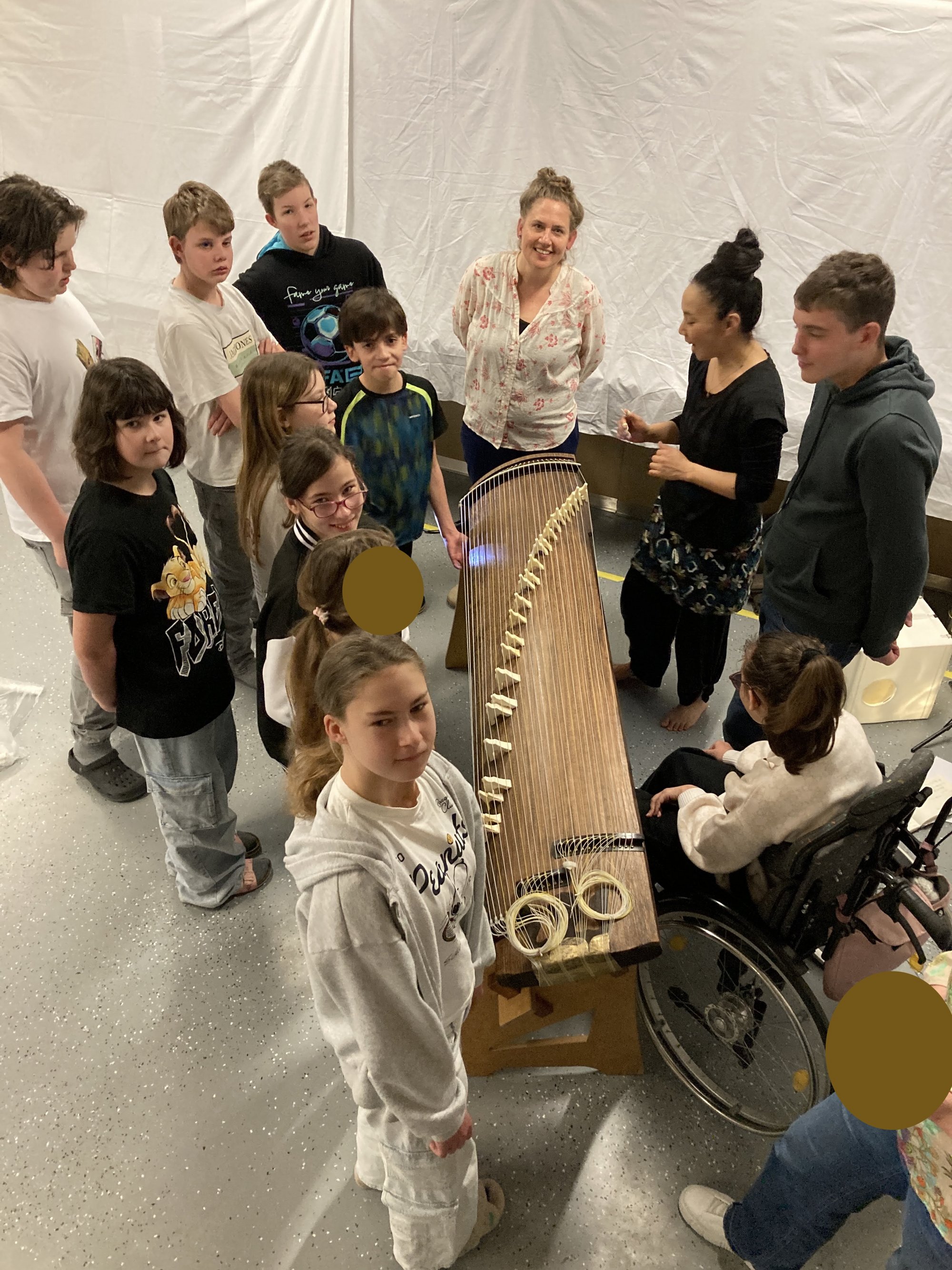 Die japanische Musikerin Karin Nakagawa besuchte gemeinsam mit Musikvermittlerin Veronika Grossberger die Sonderschule Krems. In Workshops lernten die Kinder das 25-saitige Instrument Koto kennen und wurden mit Klang, Schatten und einfachen Instrumenten selbst Teil des künstlerischen Geschehens. Das Instrument berührte unsere Herzen, und alle Teilnehmenden waren begeistert.