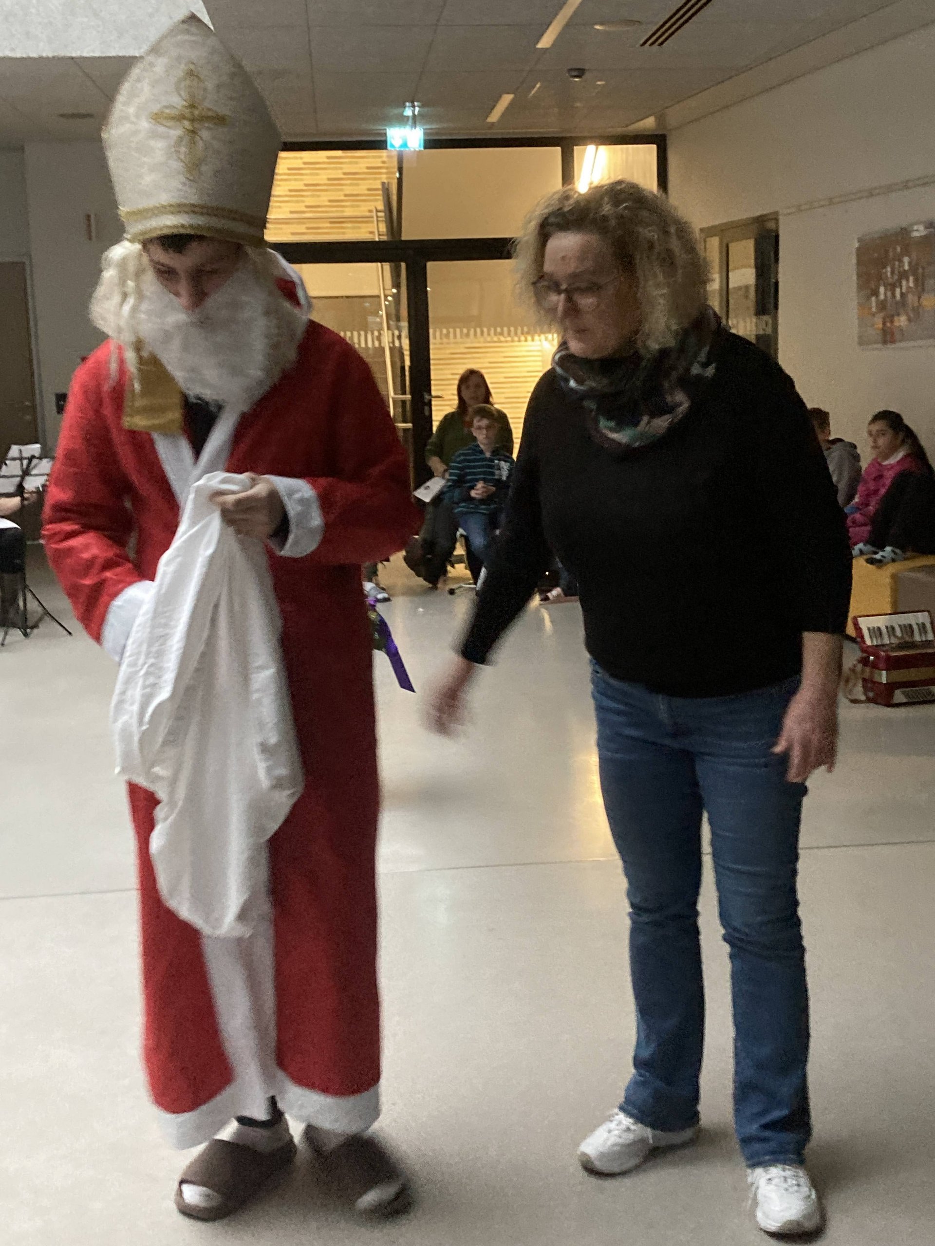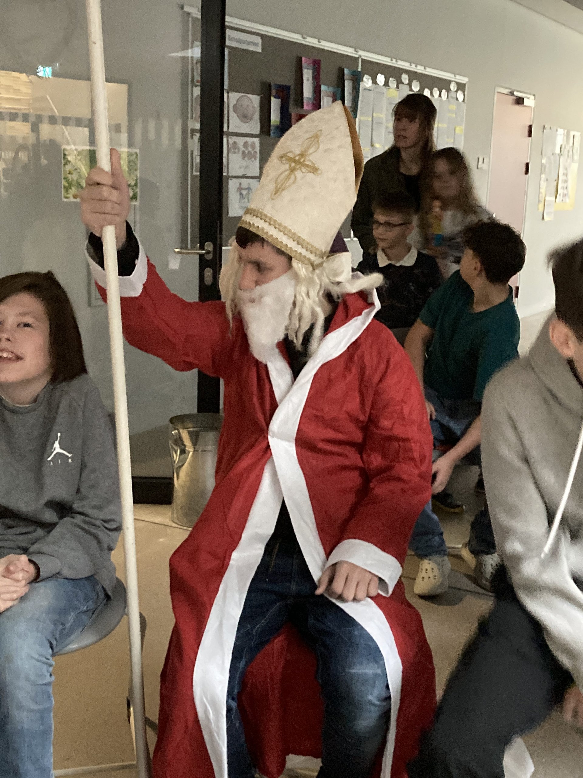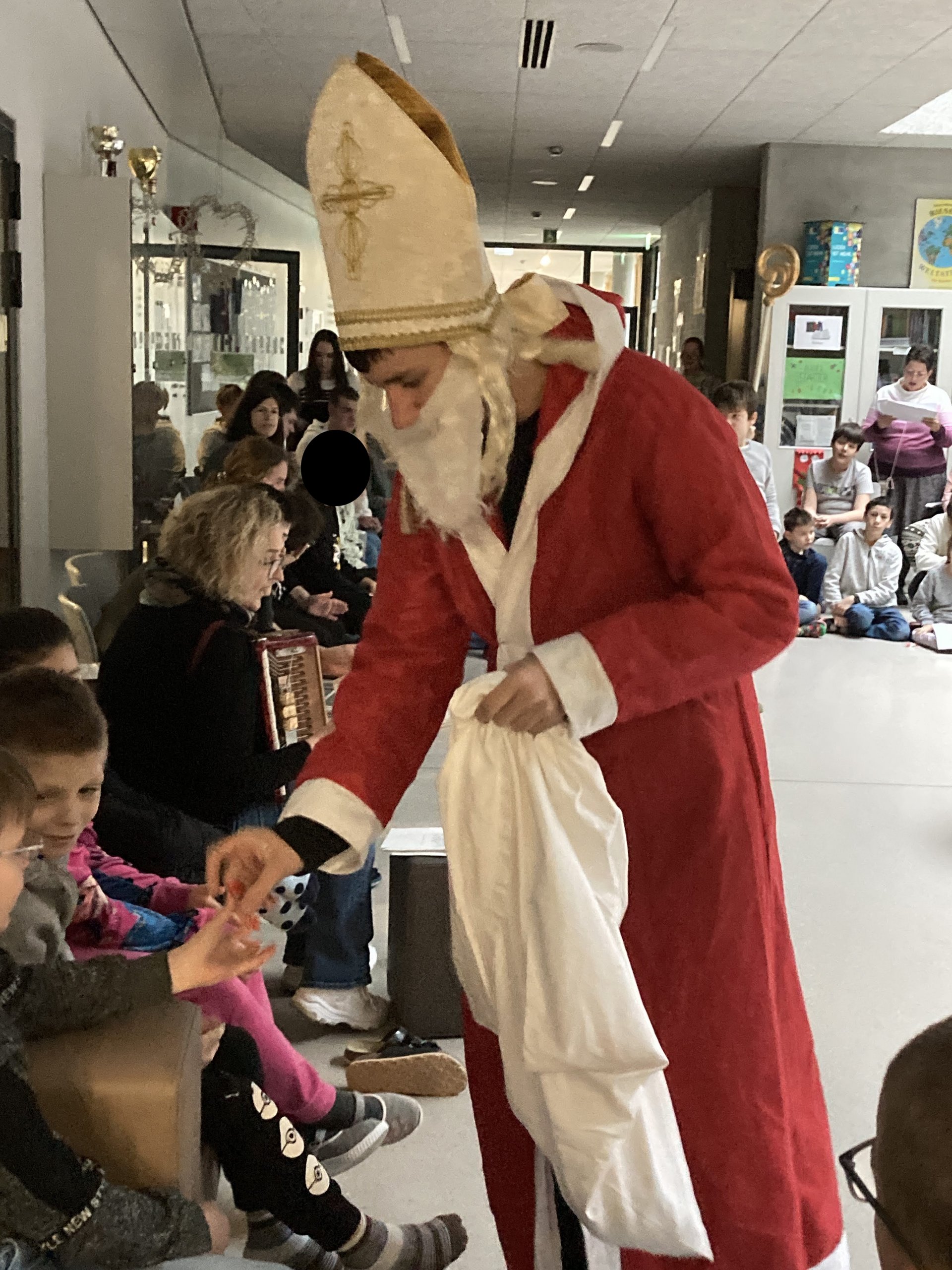 Unser Anes aus der KIZ2 verkleidet sich leidenschaftlich gern als Nikolaus. Deshalb war er bei der gemeinsamen weihnachtlichen Feier als Nikolaus im Einsatz. Es war ihm sehr wichtig zu erfahren, ob alle artig waren und danach gab es Süßigkeiten sowohl für unsere Schüler:innen als auch für unsere Lehrer:innen.