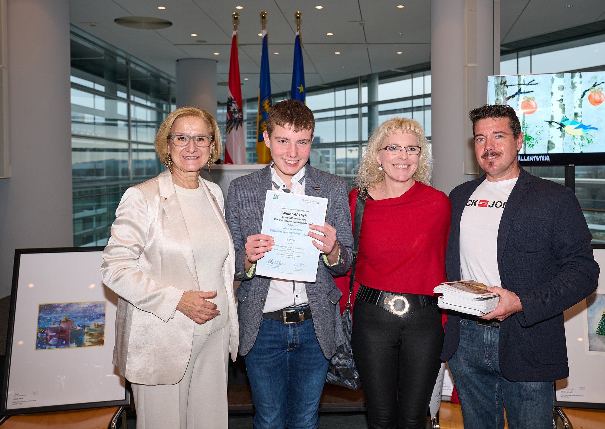 Seit über 30 Jahren wird von der Bildungsdirektion Niederösterreich der Kreativwettbewerb „WeihnARTlich - Kunst trifft Weihnacht“ durchgeführt. Die prämierten Bilder der Schülerinnen und Schüler werden wie bereits in den Vorjahren unter anderem von Landeshauptfrau Johanna Mikl-Leitner, Landtagspräsident Karl Wilfing und Bildungsdirektor Karl Fritthum als Motiv für ihre offiziellen Weihnachtsgrüße verwendet.