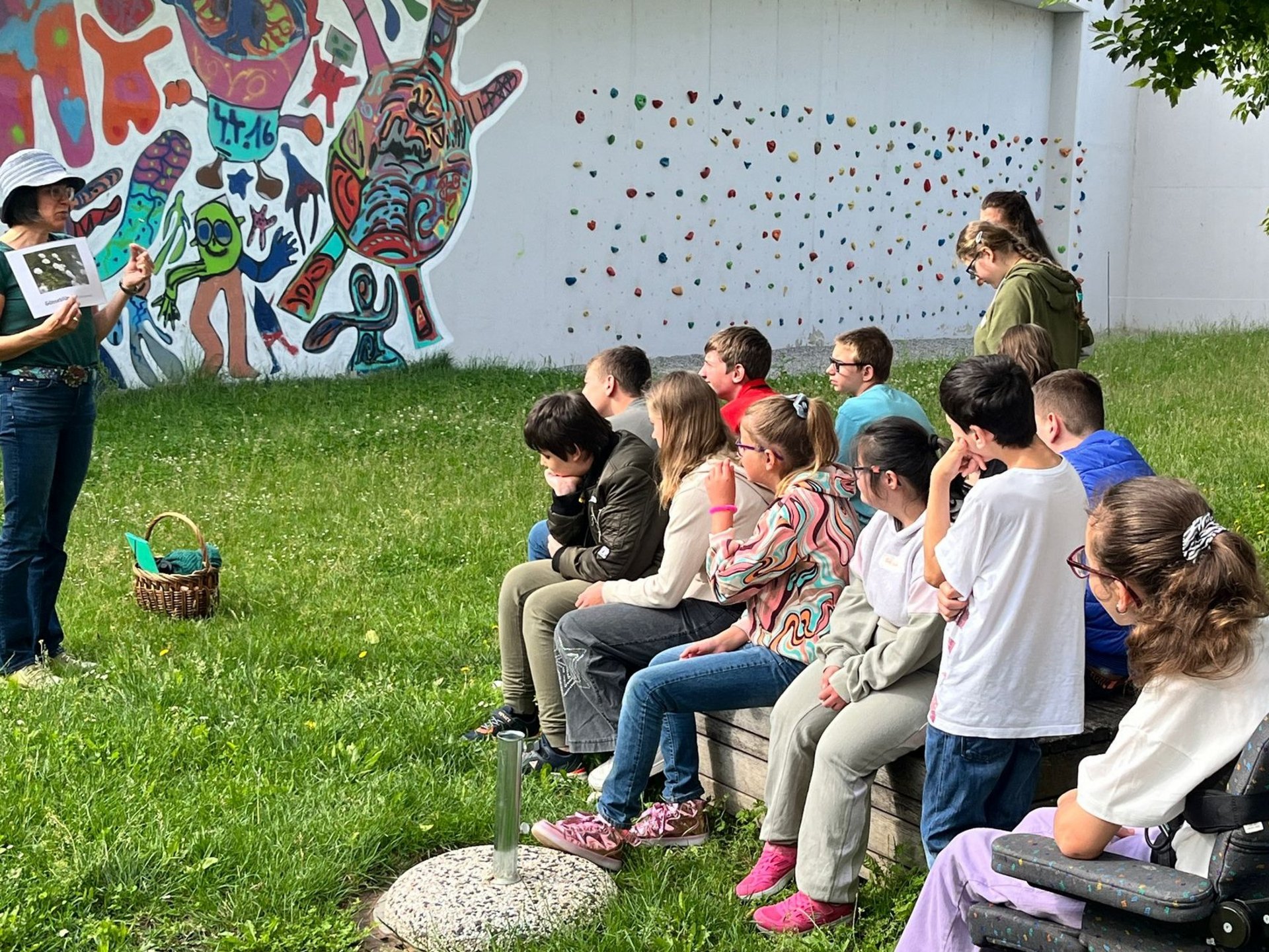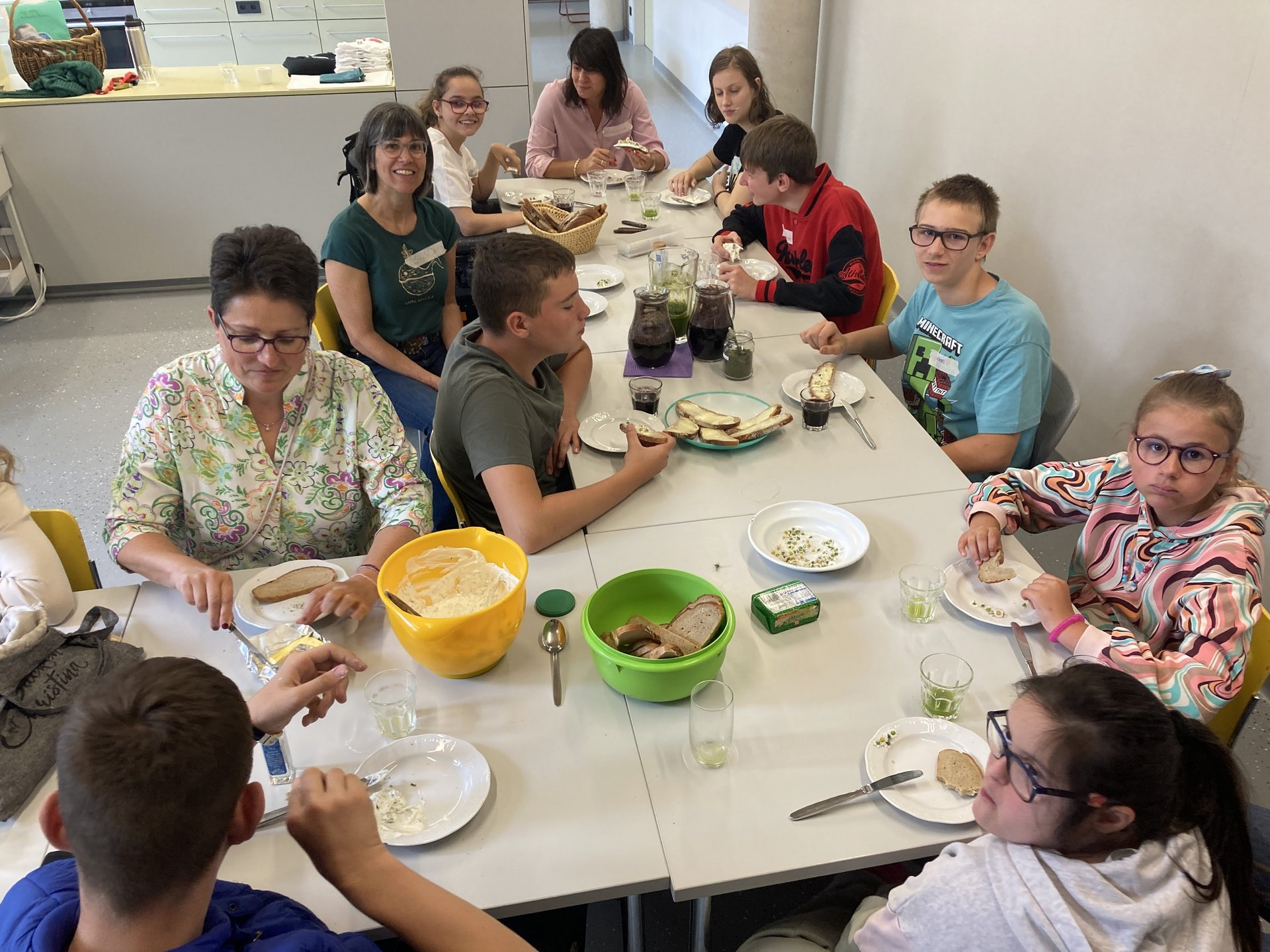 Die Wildkräutertrainerin Sonja Appel hat mit den Schülern der KG2 und KG3 einen Wildkräuter-Workshop gemacht. Wir haben im Schulgarten nach Heilkräutern gesucht und viel über die Heilkräfte von Gänseblümchen, Spitzwegerich und Brennnessel erfahren. Außerdem wurde uns gezeigt, wie man einen Spitzwegerich Verband anlegt. Schließlich wurden die Heilkräuter zu leckerer Spinat-Brennnessel-Suppe, Aufstrichen und Säften verarbeitet.